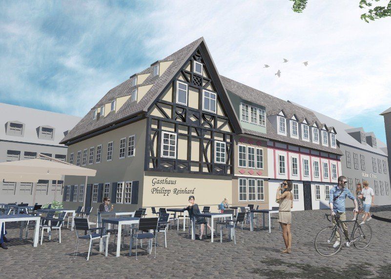 Nach § 18 Abs. 4 Hessisches Denkmalschutzgesetz sind die Wiedererrichtung der Häuserzeile Erbsengasse/ Fronhofgasse und die Veränderungen in der Graf-Philipp-Ludwig-Straße (früher Schlossgasse) zu genehmigen. Die Genehmigung wird erteilt, wenn das öffentliche Interesse an der beabsichtigten Maßnahme gegenüber eventuell entgegenstehenden Gründen des Denkmalschutzes überwiegt.